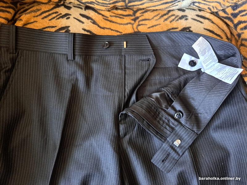 Брюки мужские черные в тонкую полоску, р.50-52, новые, импортные, длина по внешнему шву-106см, длина шагового шва-82,5см, ширина в бёдрах-56*2=112см, ширина в талии-45,5*2=90,4см. Вышлю Белпочтой наложенным или по предоплате.
