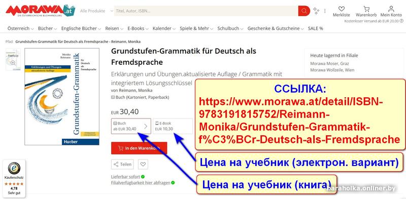 Что касается стоимости – как вариант гляньте цены на этот учебник в Европе, задав в поисковике. В том числе на сайте самого издательства Hueber. Пример с одного из австрийских сайтов – 30,40 EUR книга, 10,30 EUR её электронный вариант (см. последнее фото 9).