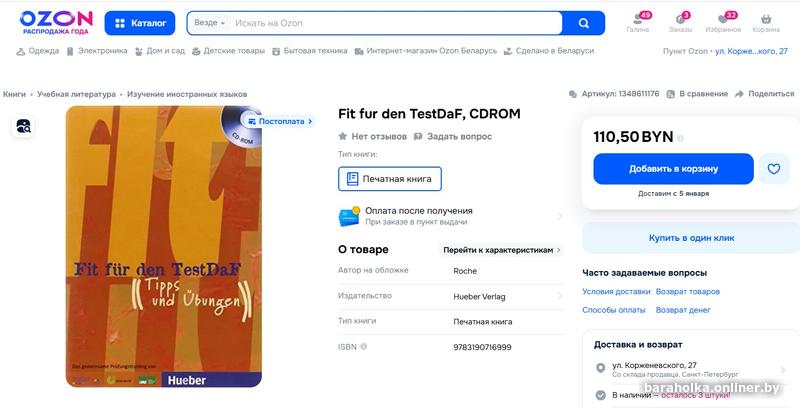 Что касается стоимости – как вариант гляньте цену на этот учебник на OZONe, задав в поисковике "Fit für den TestDaF" (результат - в последнем фото 9).