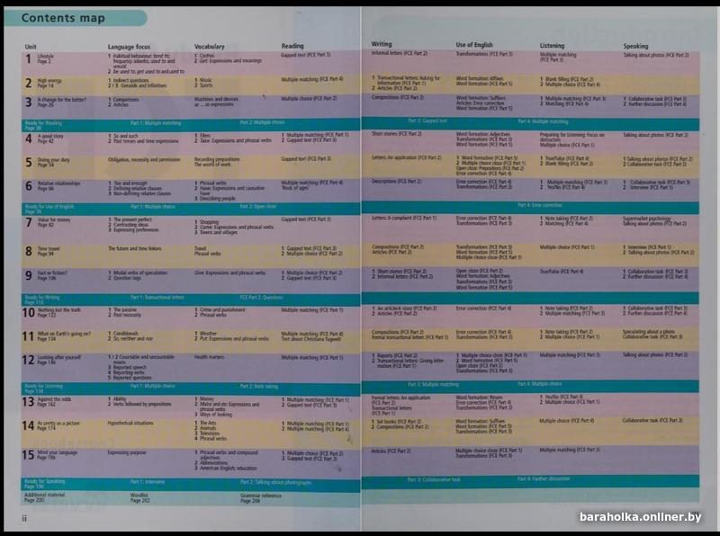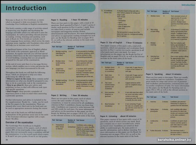 • Дополнительные разделы посвящены каждому экзаменационному заданию First Certificate