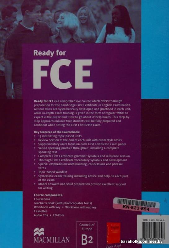 Предлагаемый учебник "Ready for FCE" (автор Roy Norris) – это комплексный курс, предлагающий тщательную подготовку к экзамену Cambridge First Certificate in English. Он охватывает всю необходимую лексику и грамматику, а упражнения построены в формате экзаменационных заданий, что помогает студентам «прочувствовать» реальный тест и привыкнуть к его структуре. Это необходимо для понимания формата экзамена и требований к выполнению заданий, быть знакомым с аутентичными текстами.