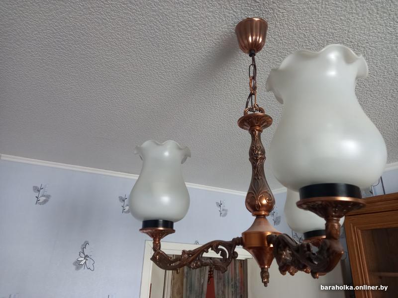 • Люстра трехрожковая. Состояние отличное (как новая). Плафоны - матовое стекло. Основание светильника - металл.Минск