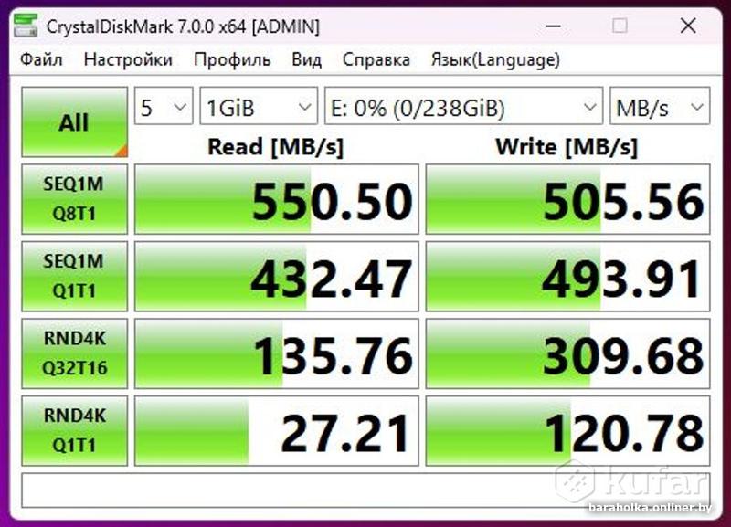 Скорость Чтение/запись: R550/W500 MB/s