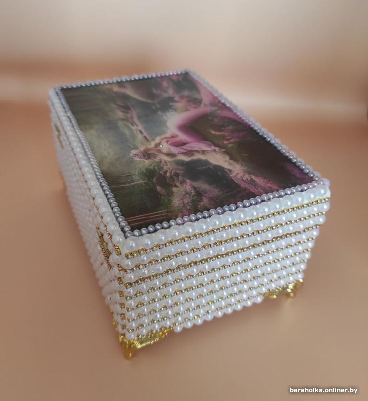 Деревянная шкатулка ручной работы. Дизайн морской жемчуг. Прекрасно украсит ваш интерьер.