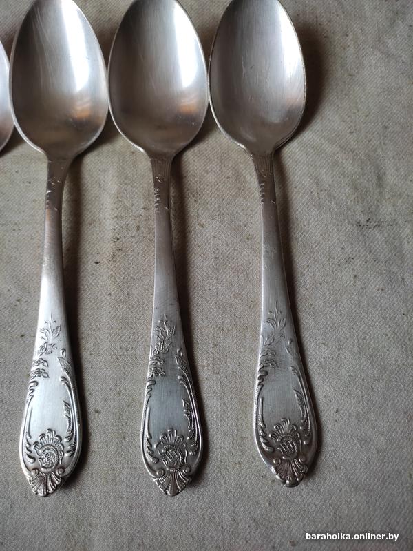 Ложки десертные СССР , мельхиор , комплект 6 шт. Очень чисто вымыты , отличное состояние. Длина ложки - 18 см , вес - 58 гр. На последнем фото столовая ложка положена для сравнения размера. Цена за комплект 6 шт. Тел. : (лайф) +375 29 661 76 71. Александр.