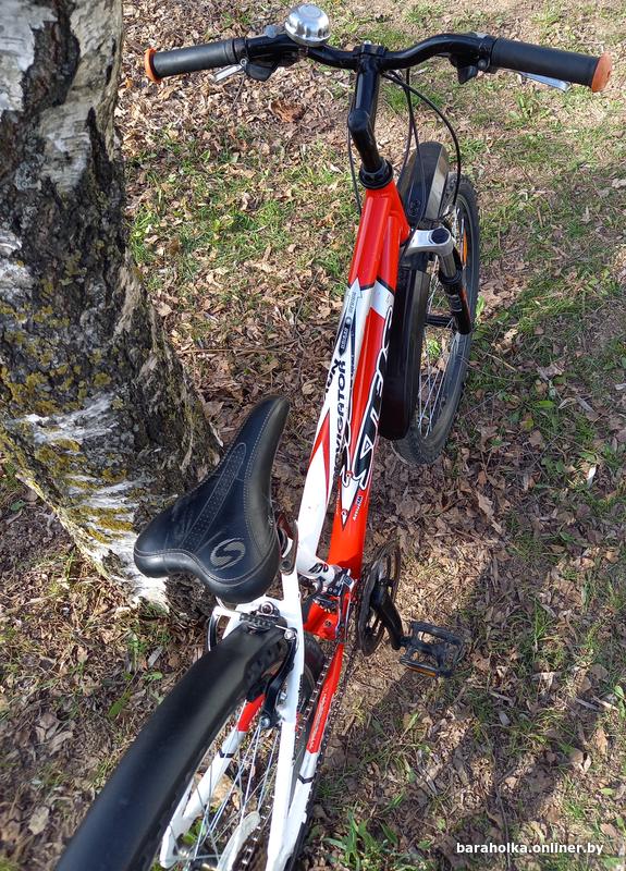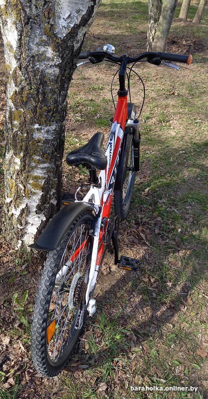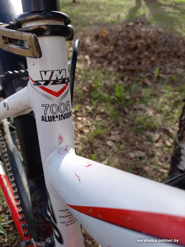 Сплав рамы-алюминий 7005, высота рамы 35.6см, колёса 24"дюйма, обода алюминий, манетки полуавтоматы. Передние амортизаторы с рег.жёсткости, 21 передача Shimano Altus, эксцентрики. Есть звонок, щитки на колёсах.