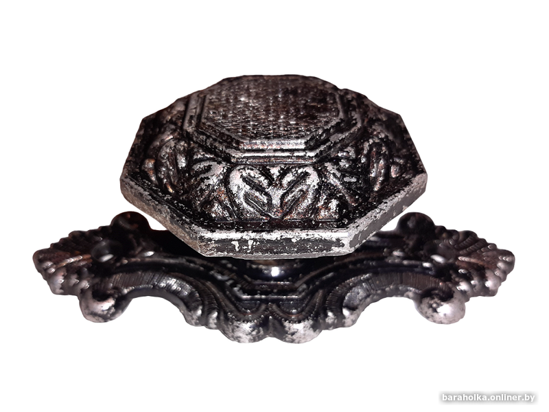 Продам Ручка-кнопка ретро винтаж для дверей или мебели под старину, размеры: длина крепёжной пластины 13.5см/ширина головы 6.5см, материал алюминий, цвет серебро с бронзой, ручка с художественной гравировкой/рисунком в антикварном стиле (смотрится шикарно со всех сторон), как новая со складского хранения (год выпуска не подскажу), только 1 штука, отдаю по минимальной цене за 40рублей BYN без торга.
