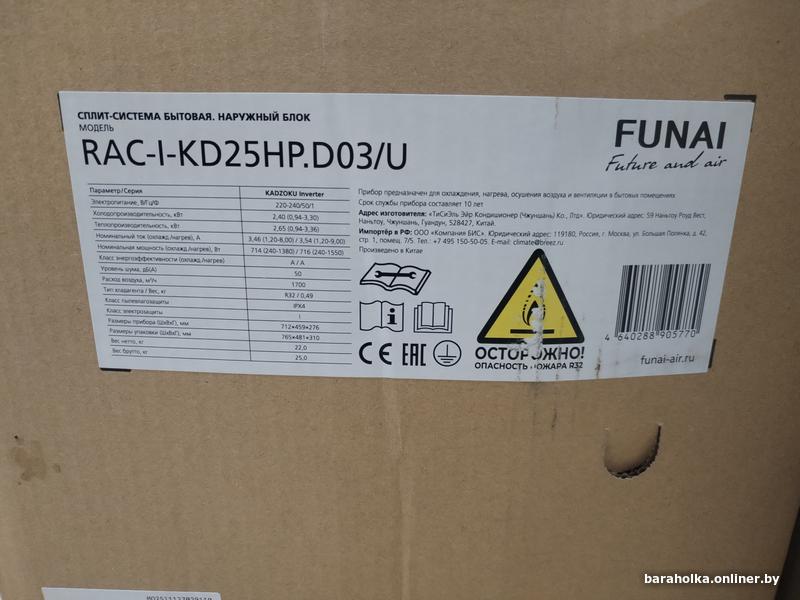 Кондиционер Funai Kadzoku inverter новый, с Wi-Fi модулем, площадь 25 м², работает, как на охлаждения, так и на обогрев, весь комплект